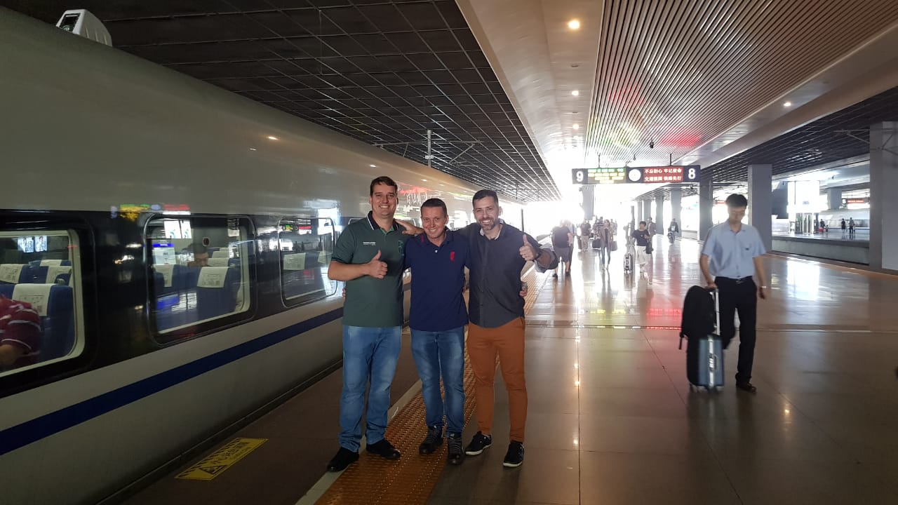 Logo após a visita conseguimos almoçar com os chineses e ter um almoço típico, que é bacana e ajuda a desenvolver o relacionamento. Foi um dia de muito aprendizado.