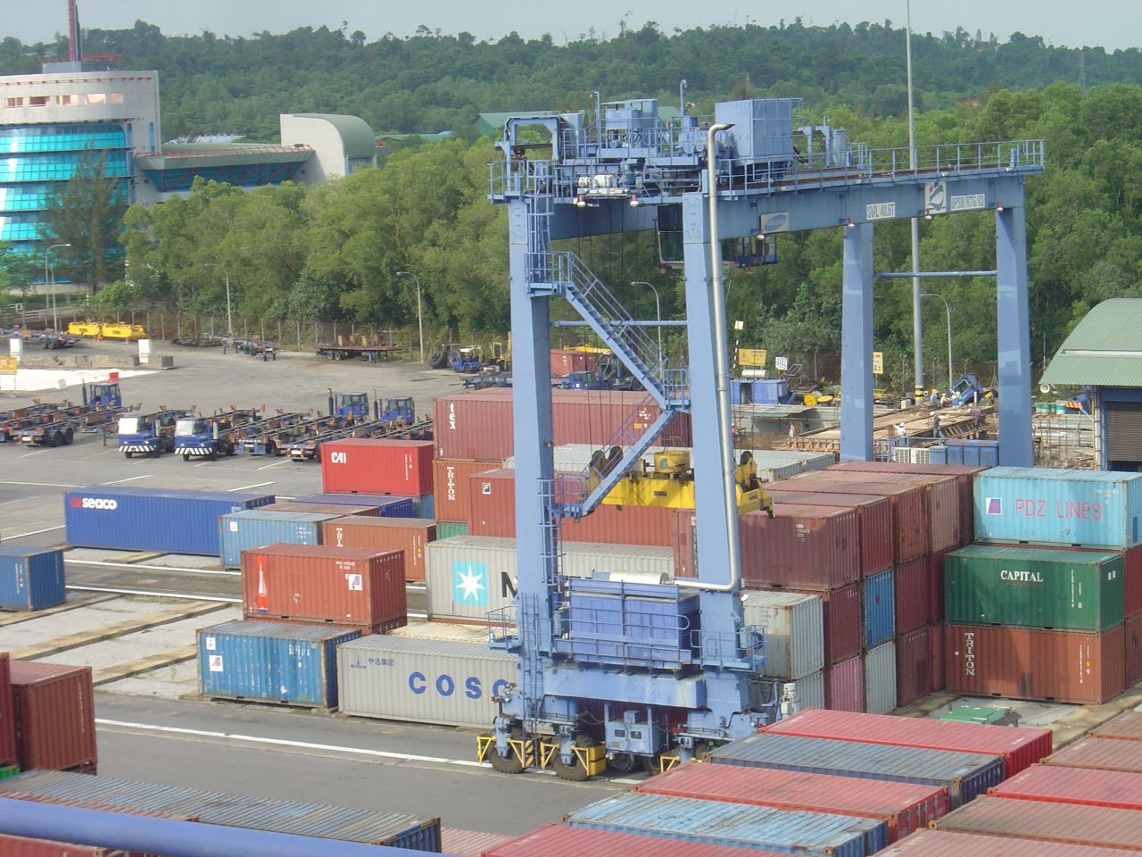 Este equipamento contribui para a organização de cargas no pátio. Quando os contêineres já estão no cais, entram em ação os “Terminal Tractors”, caminhões que fazem o transporte até o pátio. Para organizar estas cargas no pátio, existem os transtêineres, que podem ser RTGs (“Rubber Tyre Gantry”, isto é, guindaste sobre pneu). Foto de Richard W Sinyem